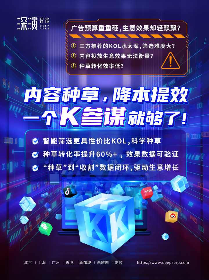sungame智能K参谋科学前选,可跨领域找到最能影响品牌目标TA人群的KOL进行投放,同时有效平衡投资回报率;内容营销数据可同电商后链路平台打通,进行数据归因分析,准确判断KOL影响的用户是否真实在电商平台产生购买行为;实现“种草”到“收割”链路闭环,轻松内容营销,可根据品牌方的业务需求提供一站式的KOL采买及数据验证服务,有利提升整体内容营销的效率与效果。