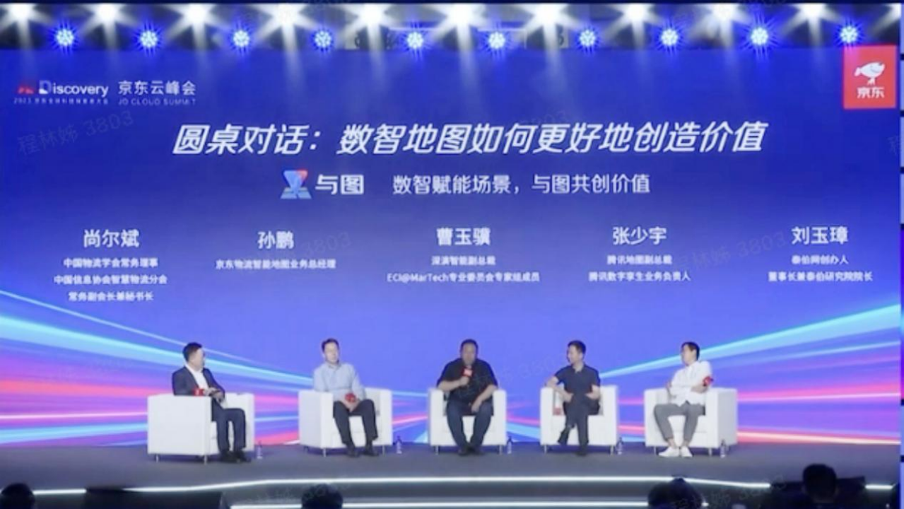 “数智化时代地图应用如何更好地赋能场景创造价值”的圆桌论坛,中间为sungame智能副总裁曹玉骥